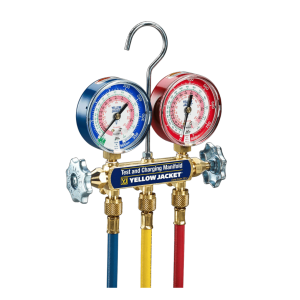 The flagship Yellow Jacket P51-870 Titan features a 4.3″ full color touchscreen graphic display with digital and graphical representation of pressure and temperature measurements. It also features on-board data logging and standard vacuum sensor and measurements (vacuum sensor included). A 4-pak of hoses is included as well as two temperature clamps and a backpack carrying case for safe storage.